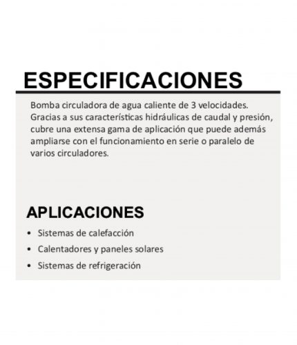 Bomba recirculadora de agua caliente con 3 velocidades.. *Recomendamos solicitar asesoría técnica antes de realizar la compra 👇