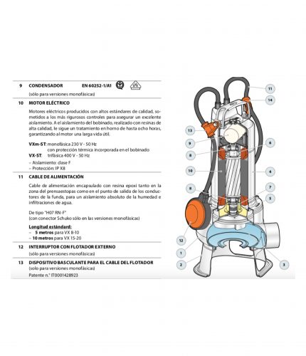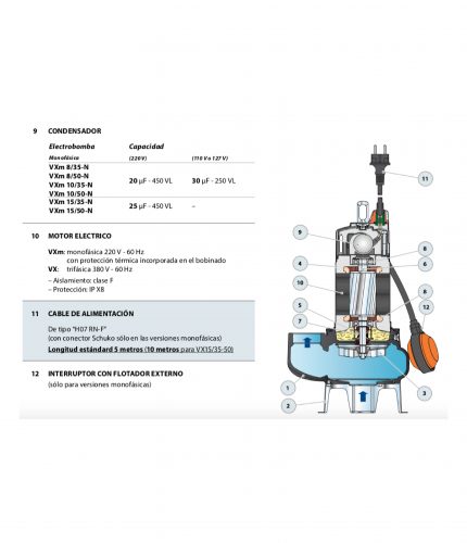 Electrobomba sumegible aguas negras impulsor tipo vortex - bomba hierro. *Recomendamos solicitar asesoría técnica antes de realizar la compra 👇
