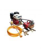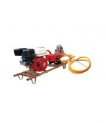 Fumigadora estacionaria con motor a gasolina – con un rollo de manguera de 100 y una lanza de fumigación.