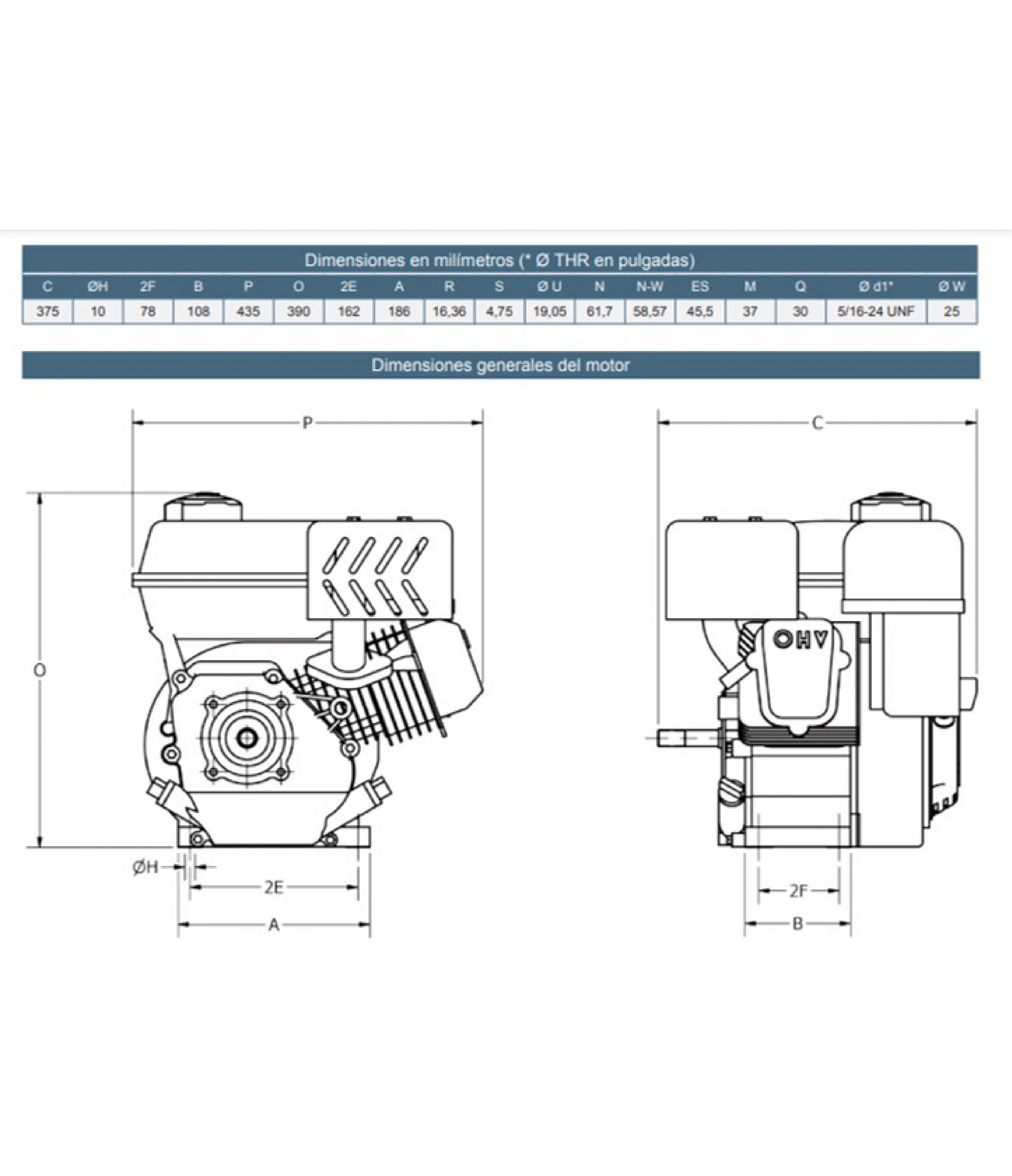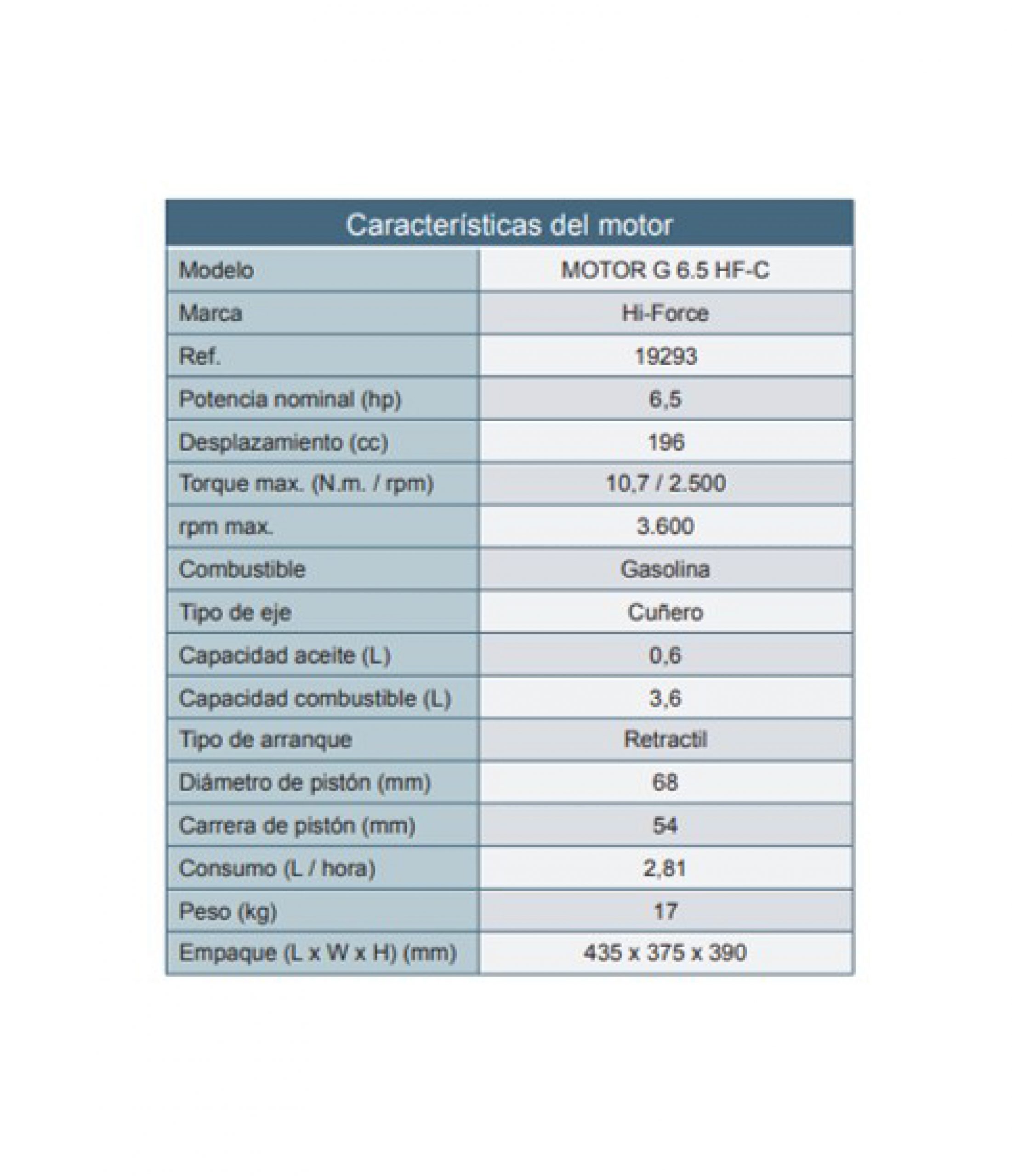 Motor 4 tiempos gasolina de 6,5hp – eje cuña – alta revolución.
