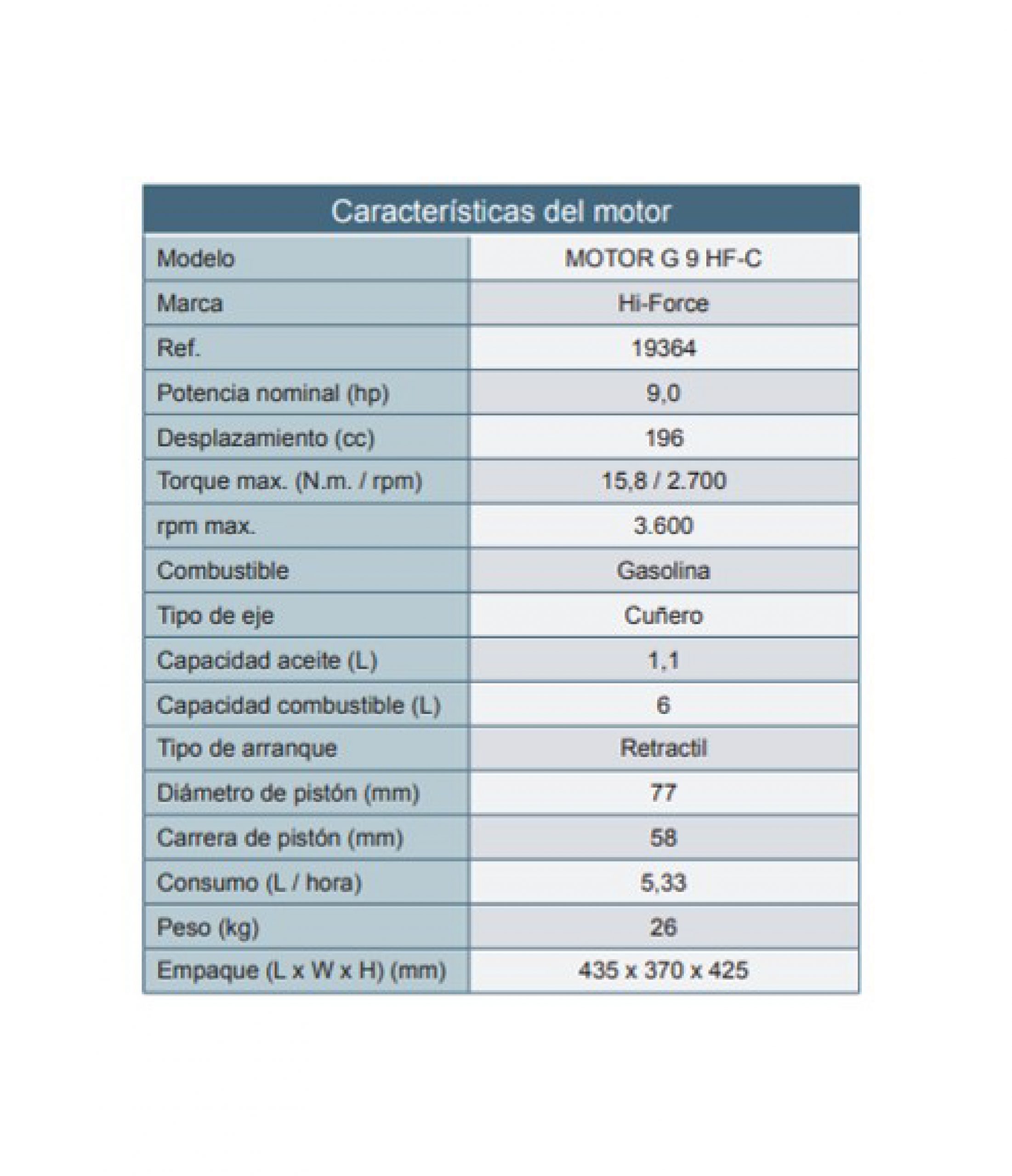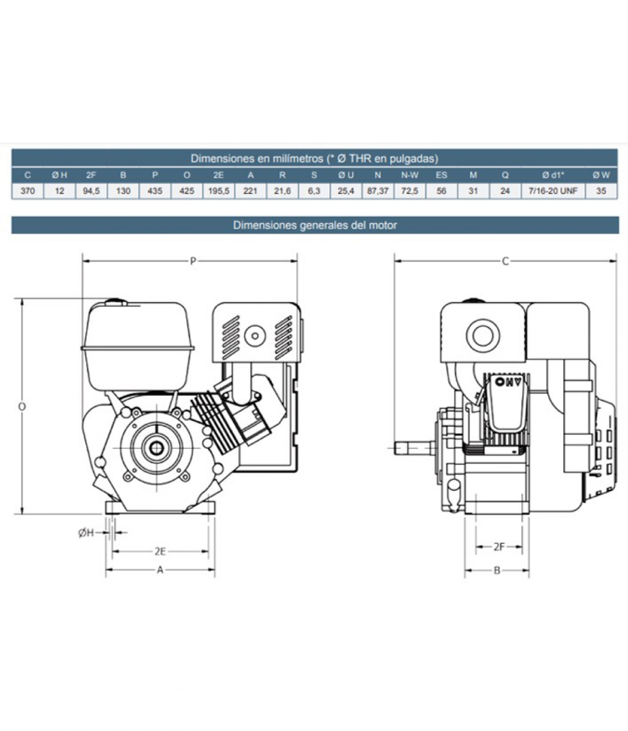Motor 4 tiempos gasolina de 9 hp – eje cuña – alta revolución.