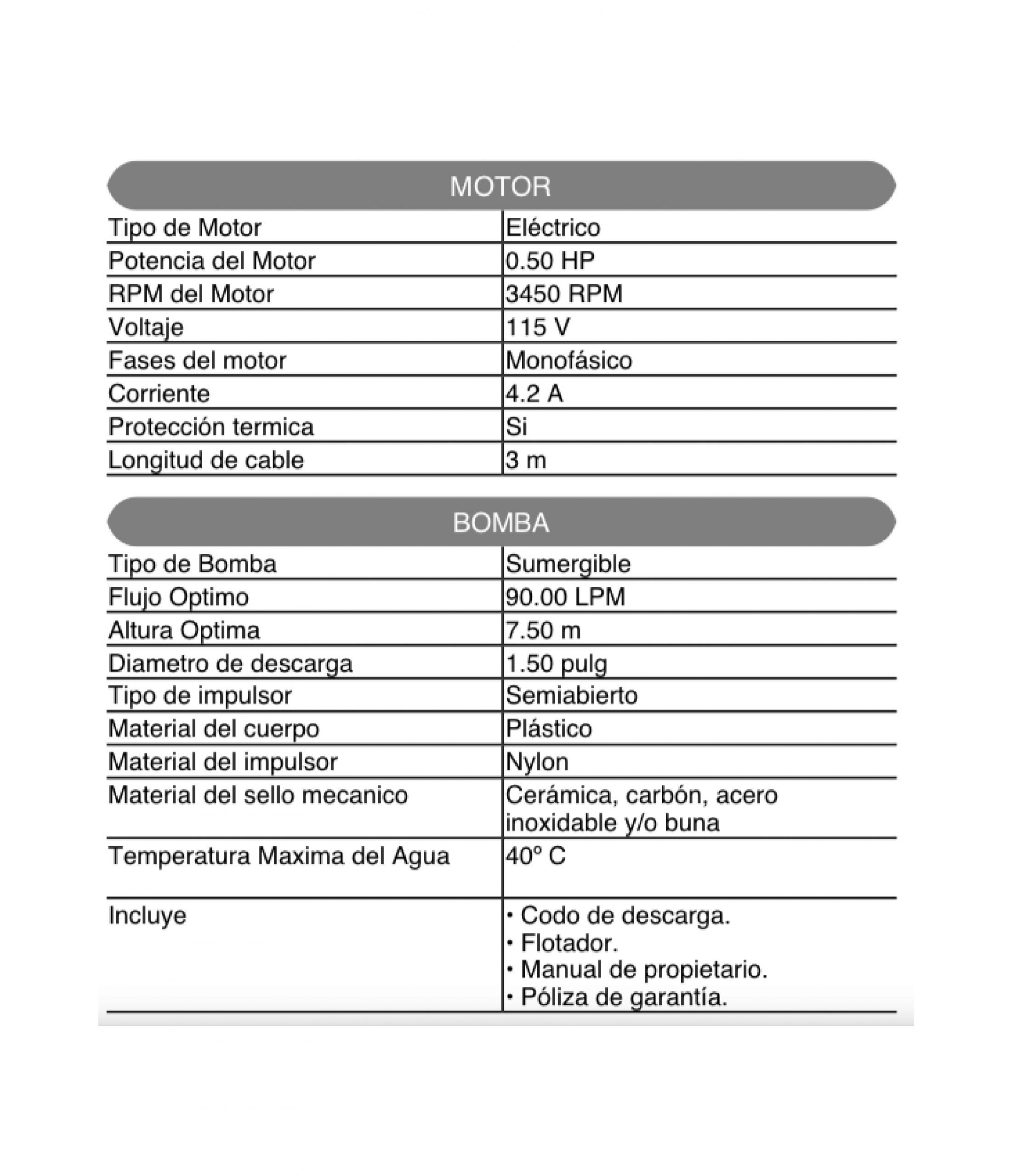 Electrobomba sumergible plástica para guas limpias con flotador.