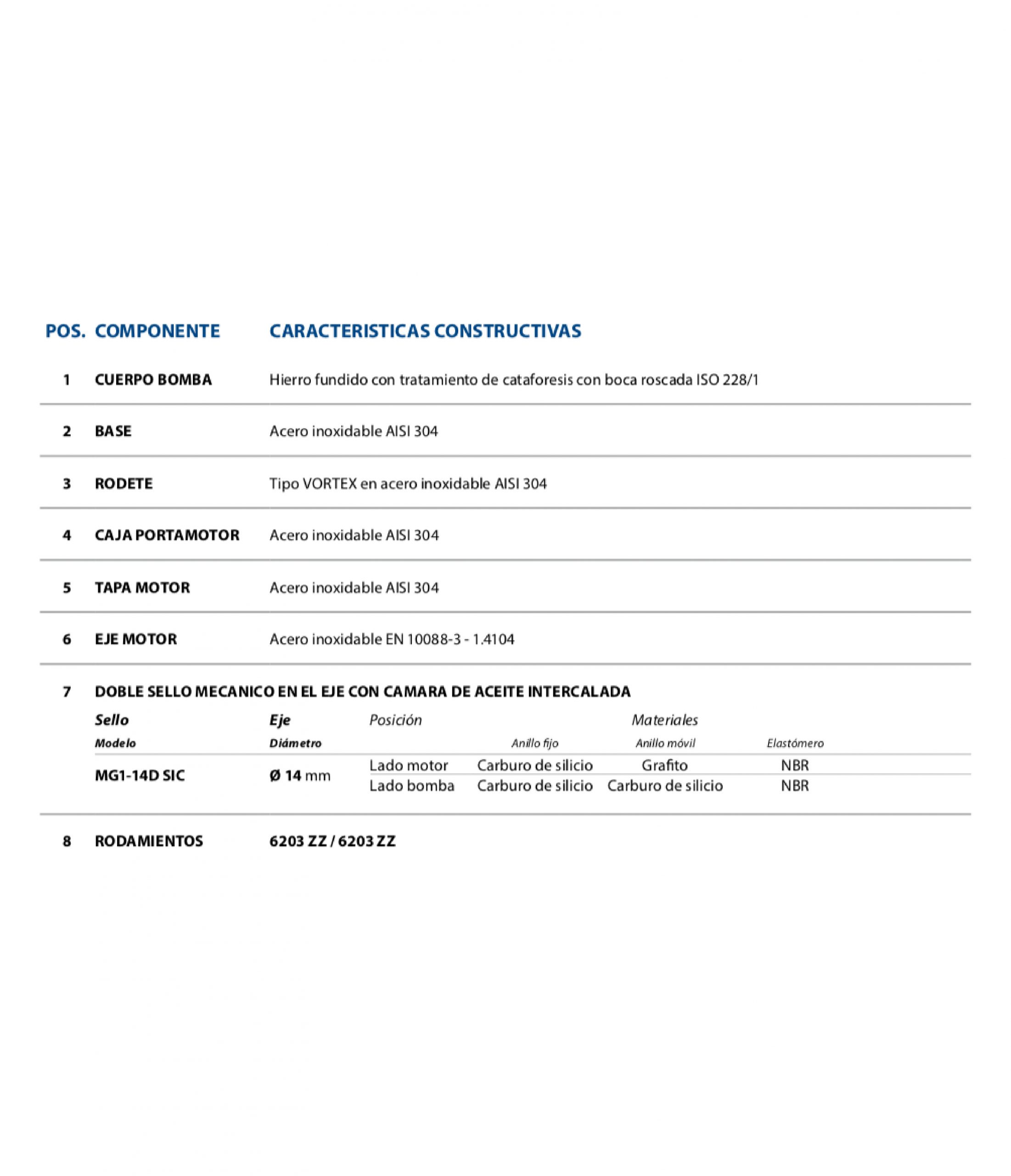 • Succión/descarga: 11/2"